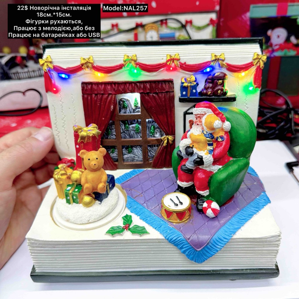 Новорічна інсталяція.Фігурки рухаються працює з мелодією,або без на батарейках або USB