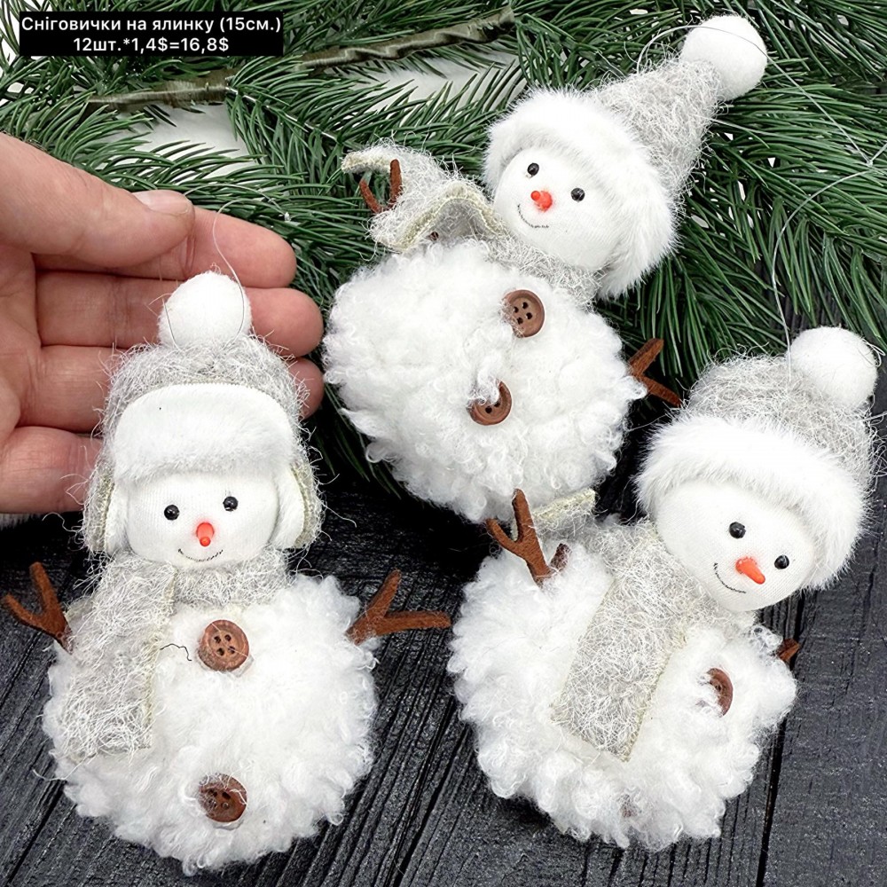 0037 сніговички на ялинку (15 см) ціна за 12 шт