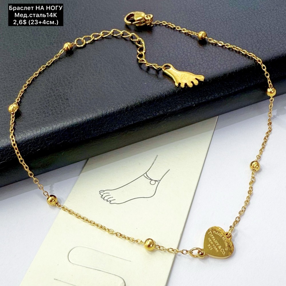 Запитати про товар: Браслет мед.сталь14К 10413 (23+4см.) НА НОГУ