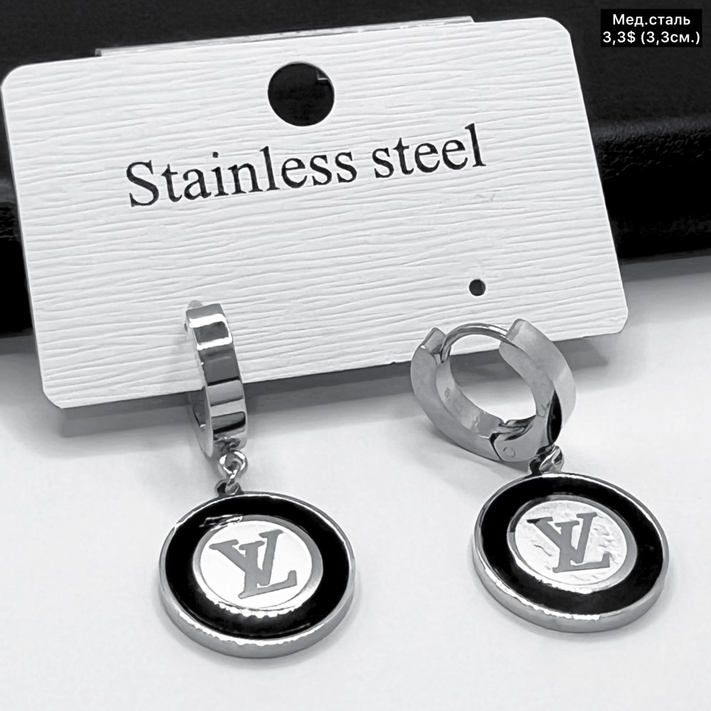 Сережки мед.сталь 10622 ( 3.3 см.)