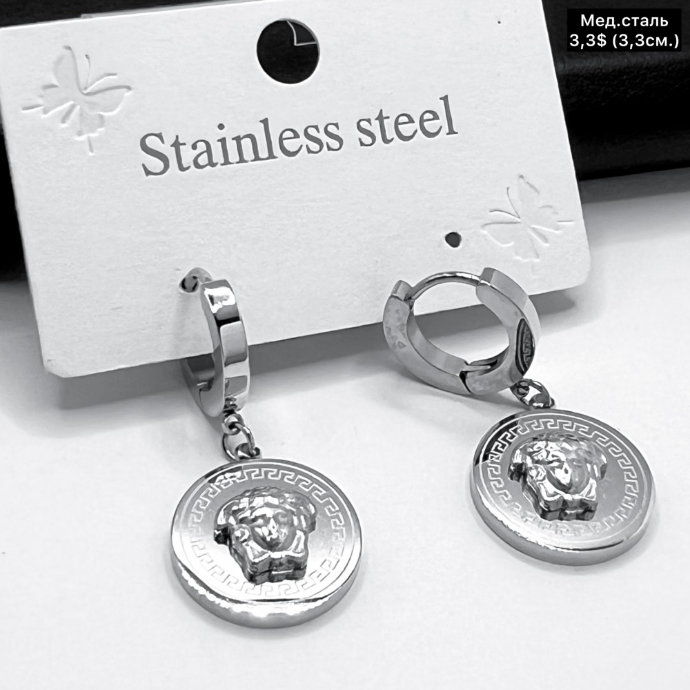 Сережки мед.сталь 10623 ( 3.3 см.)