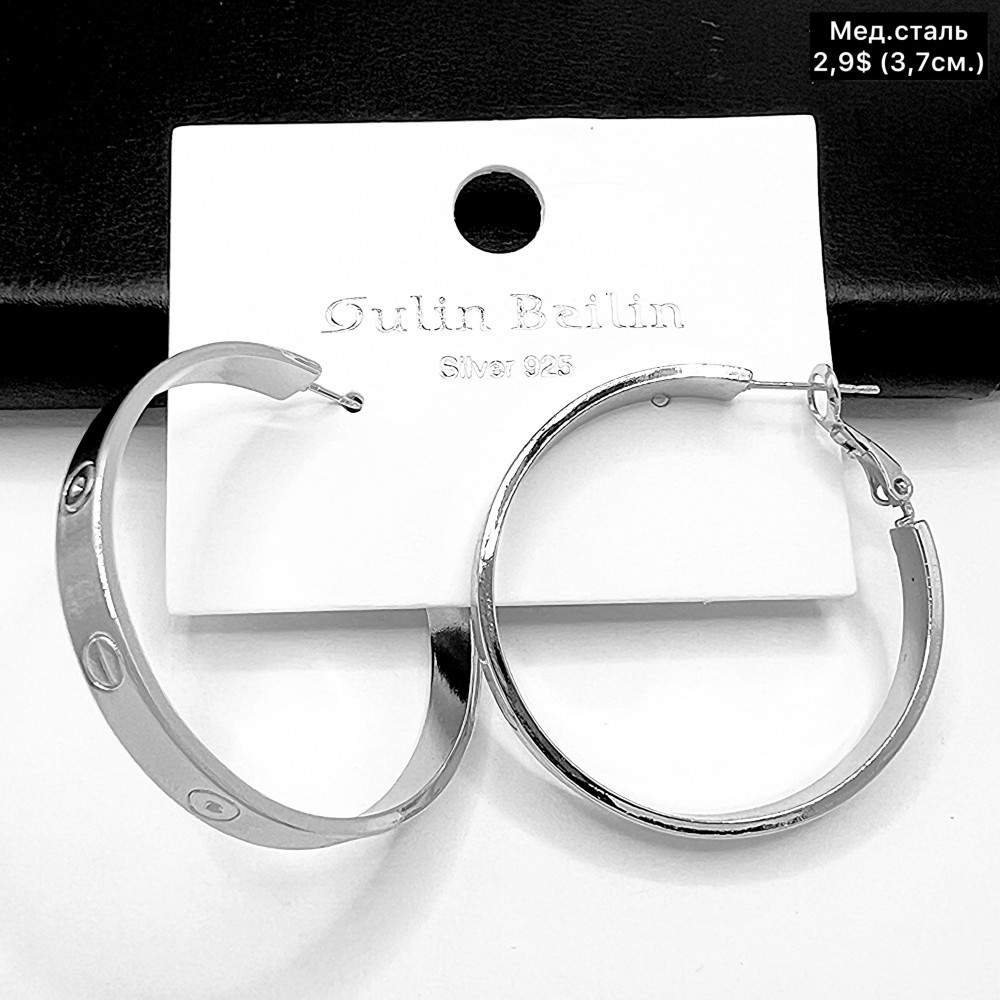 Сережки мед.сталь 10629 ( 3.7 см.)