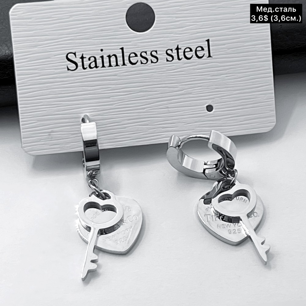 Сережки мед.сталь 10651 ( 3.6 см.)