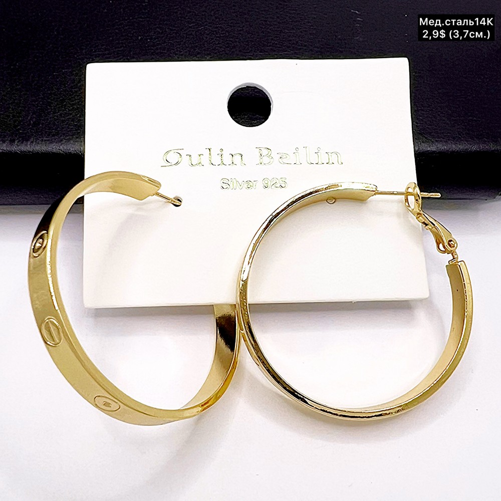 Сережки мед.сталь14К 10651 ( 3.7 см.)