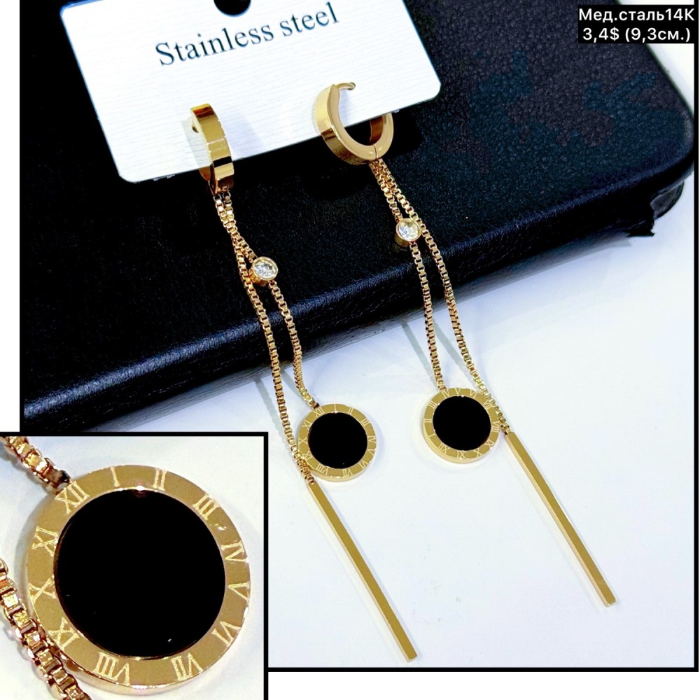 • Код продукту: Сережки мед.сталь14К 10713 (9.3см)