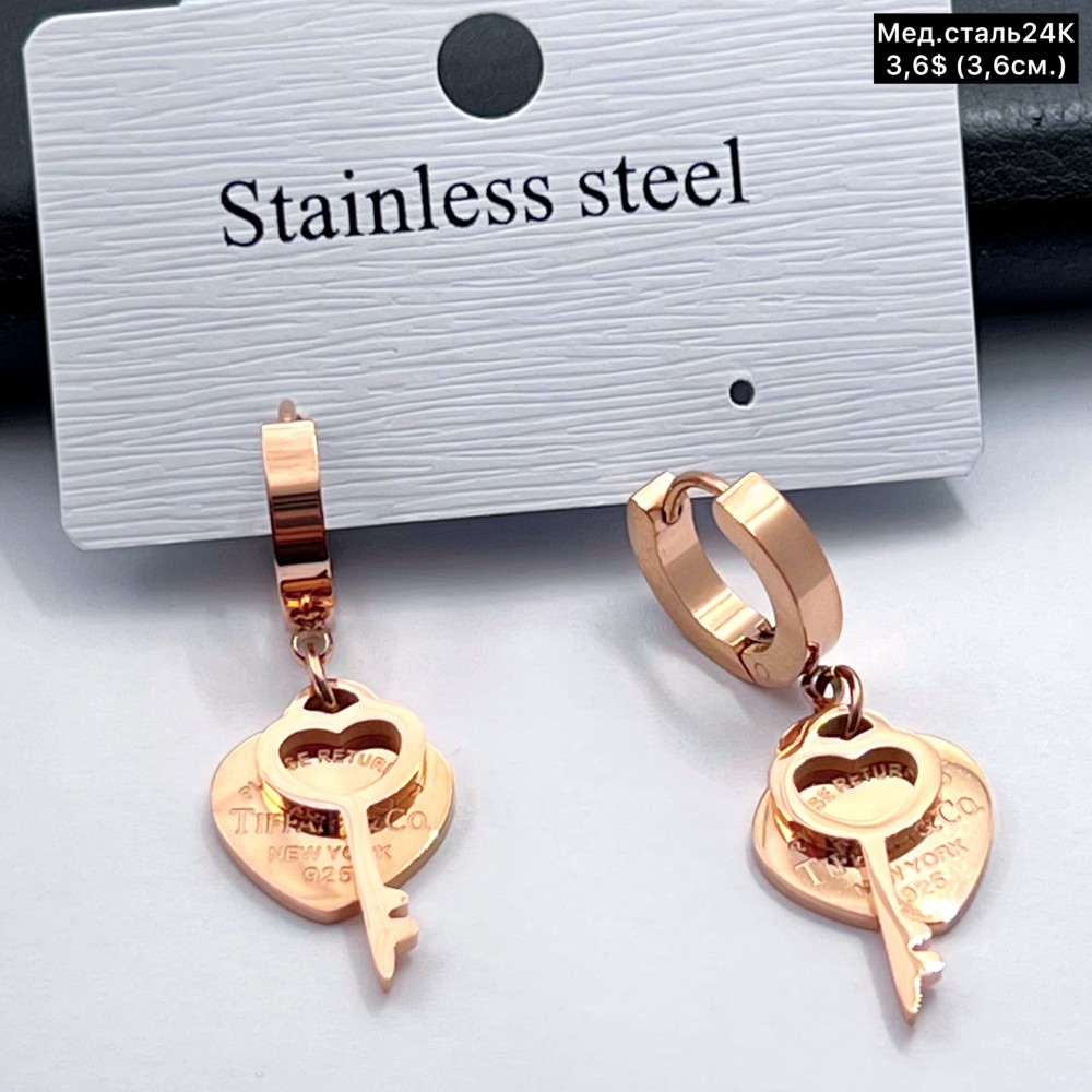 Сережки мед.сталь24К 10470 ( 3.6 см.)