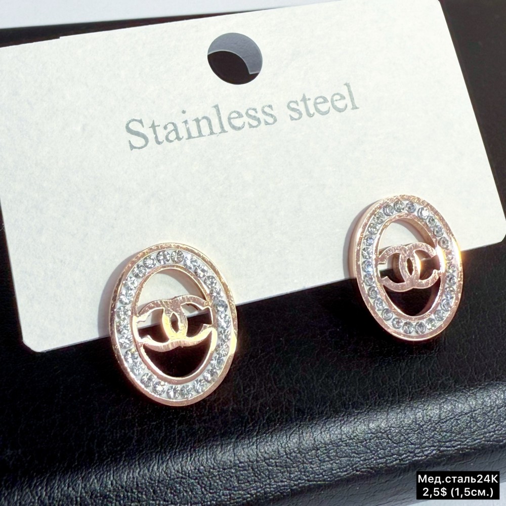 • Сережки мед.сталь24К 10498 Застібка «цвяшки» (1,5см.)