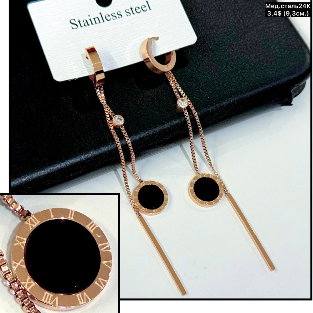 Запитати про товар: Сережки мед.сталь24К 10544 (9.3см)