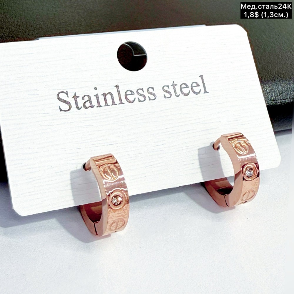 Запитати про товар: Сережки мед.сталь24К 10549 (1.3см)